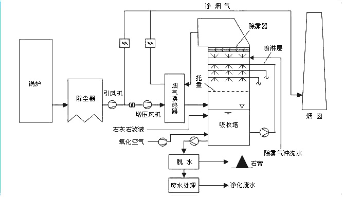⑴、吸收劑適用范圍廣:在FGD裝置中可采用各種吸收劑,包括石灰石、石灰、鎂石、廢蘇打溶液等;
